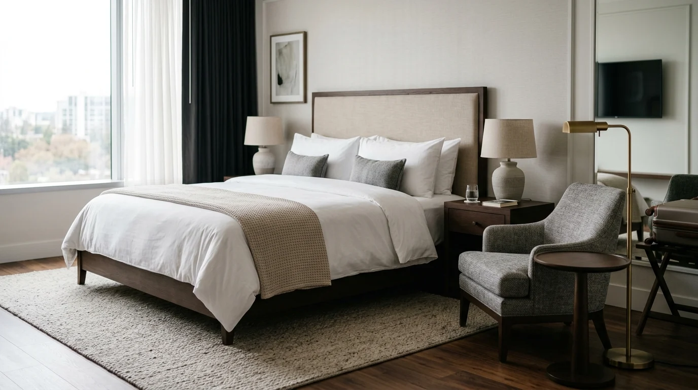 While brand standard manuals dictate the overarching prototype, individual properties frequently require specification adjustments due to architectural anomalies or regional regulations. A standard king room prototype might assume a 350-square-foot footprint, but adaptive reuse projects or urban infill sites frequently present structural columns or reduced square footage. Hotel owners must establish guidelines for scaling casegoods—such as reducing a standard 72-inch credenza to 60 inches—without violating brand proportions or ergonomic standards. Furthermore, local building codes necessitate functional adaptations. Specifications must account for localized compliance, such as ensuring all desk heights and pathway clearances maintain the strict 36-inch minimum required by the Americans with Disabilities Act (ADA) in the United States, or equivalent regional accessibility frameworks. Electrical integrations within headboards and desks must also be adapted for regional voltage standards and plug types without altering the structural envelope.